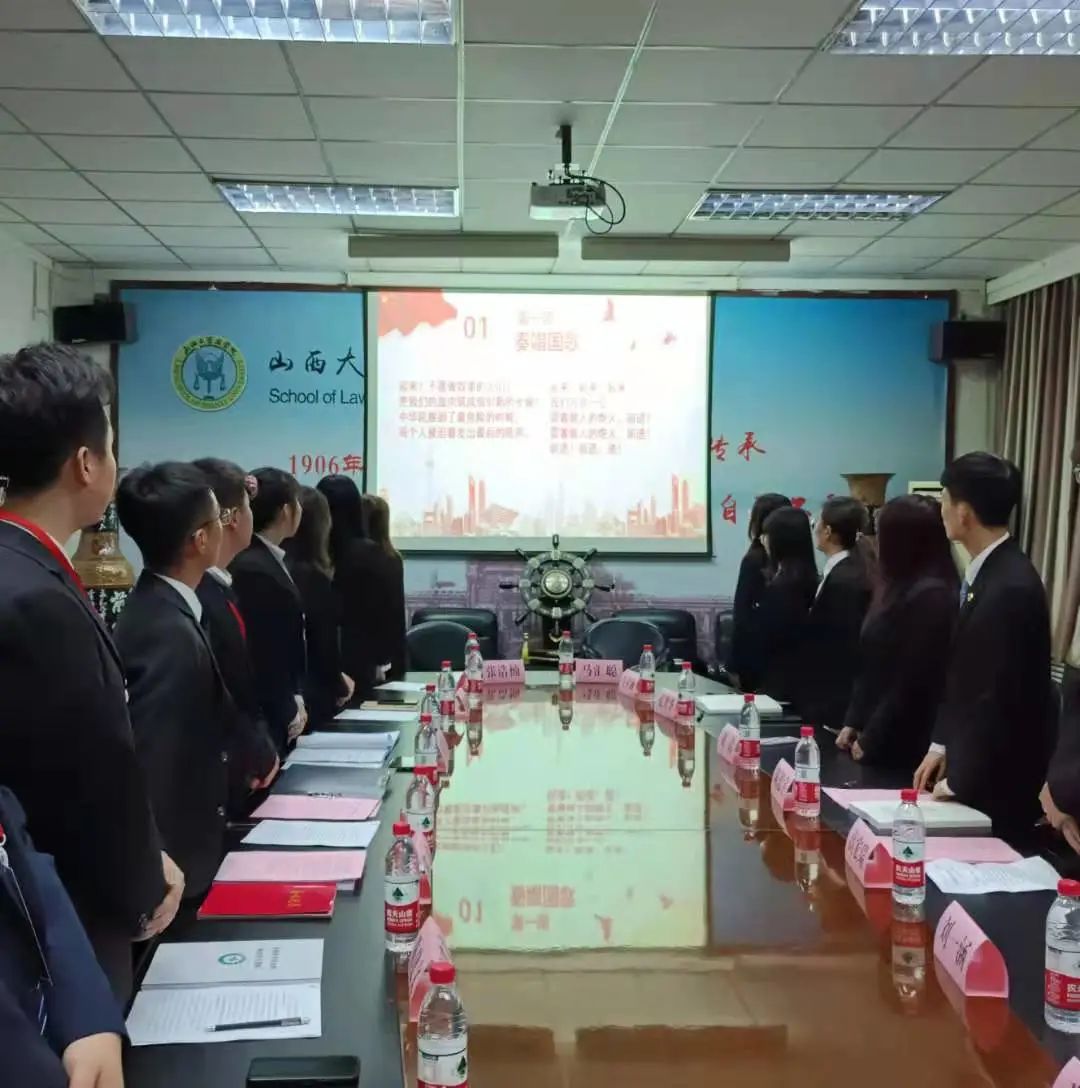 会议开始,在主持人冯佳欣的带领下进入第一项,奏唱国歌。