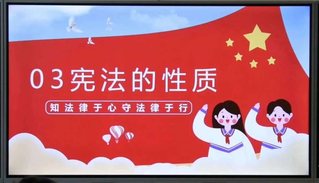 在庄严的国歌声后,在场学生齐声诵读《中华人民共和国宪法》,学生们个个精神饱满,情绪高昂,句句铿锵有力,声声入耳,字字入心,大家在诵读中重温宪法条款,感受宪法的神圣和庄严。