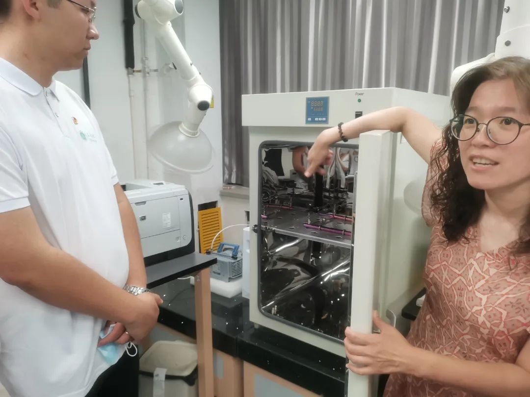 在中心高级工程师,毕业于我校分子所的赵静老师带领下,实践队员参观了三层的实验室,实验室主要有前处理区域和放置大型仪器的区域。老师为我们讲解了几种仪器,有专门测量水和土壤中汞砷元素的仪器,还有原子荧光光谱仪和离心管等。微波消解仪可以把测量的物质用酸消解,如把土壤放到仪器里面消解,变成液体,测量各种物质。